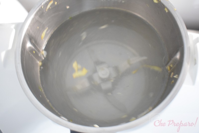 • Unite i gamberi tagliati a pezzi e cuocete 3 minuti/100°/antiorario/velocità 1. Appena cotto  il condimento versatelo in una ciotola e tenetelo da parte.