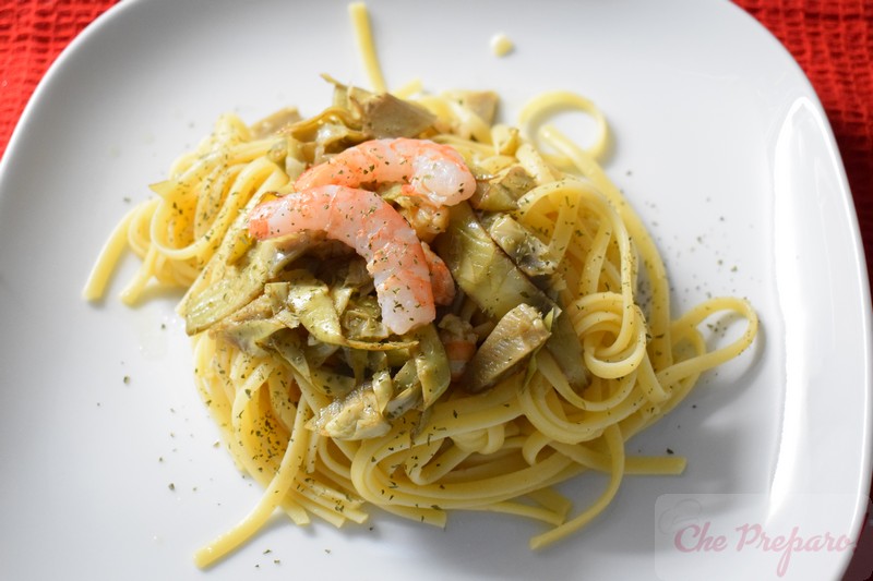 Linguine con carciofi e gamberi – Ricetta Bimby