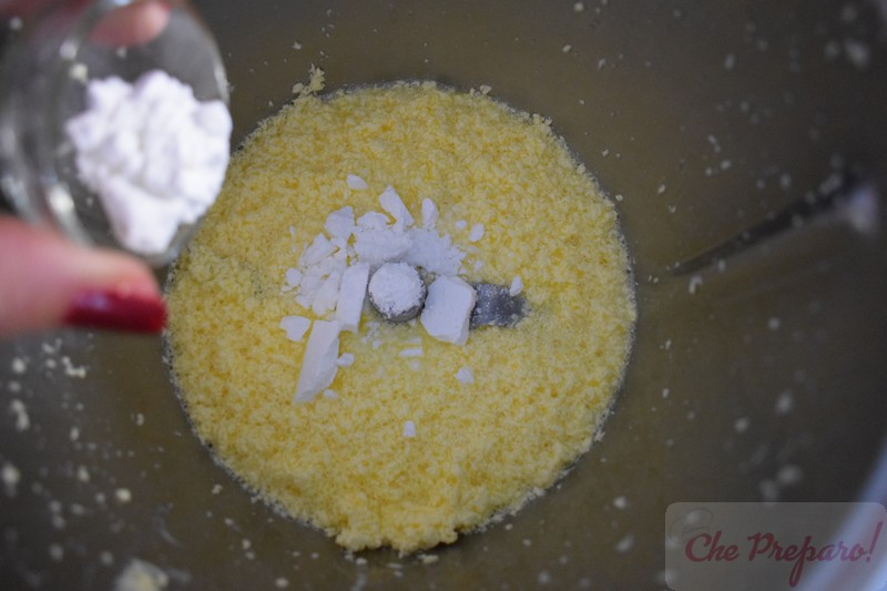- Ora unite 300 g di farina, 1 bustina di lievito per dolci, un pizzico di sale e impastate 15 secondi/velocità 5.