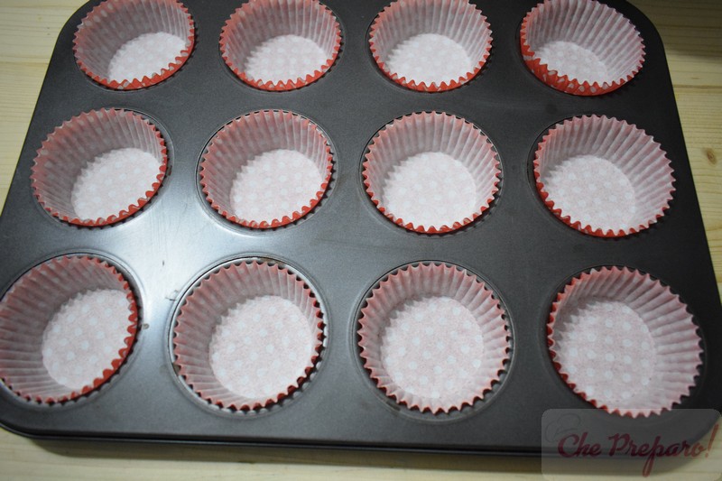 - A questo punto sistemate i pirottini, negli appositi stampi e mettete 1 cucchiaio d'impasto, poi unite un cucchiaio di Nutella e ricoprite con un altro cucchiaio di impasto.
