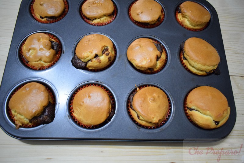 - Adesso cuoceteli in forno caldo a 180° per 15/20 minuti. Appena cotti sfornateli e servite i vostri muffin alla Nutella. Sono pronti per essere gustati.