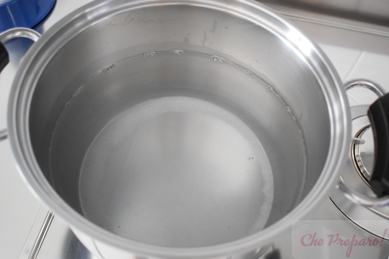 • Portate a bollore una pentola con acqua e sale, a bollore alzato calate i riccioli o la pasta che più preferite. Lasciate cuocere per il tempo indicato sulla confezione.
