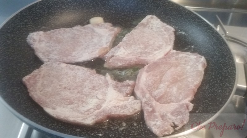 - Quando il burro sarà ben sciolto e caldo calate le fettine di arista e cuocetele, prima da un lato poi dall'altro circa 10 minuti.