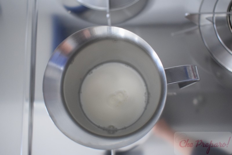 - Intanto intiepidite 120 grammi di latte nel quale andrete a sciogliere una cartella composta da: 30 grammi di cremor tartaro e 20 grammi di bicarbonato di sodio, si formerà all’istante una schiuma bianca che aggiungerete alla farina e mescolate il tutto con un cucchiaio.